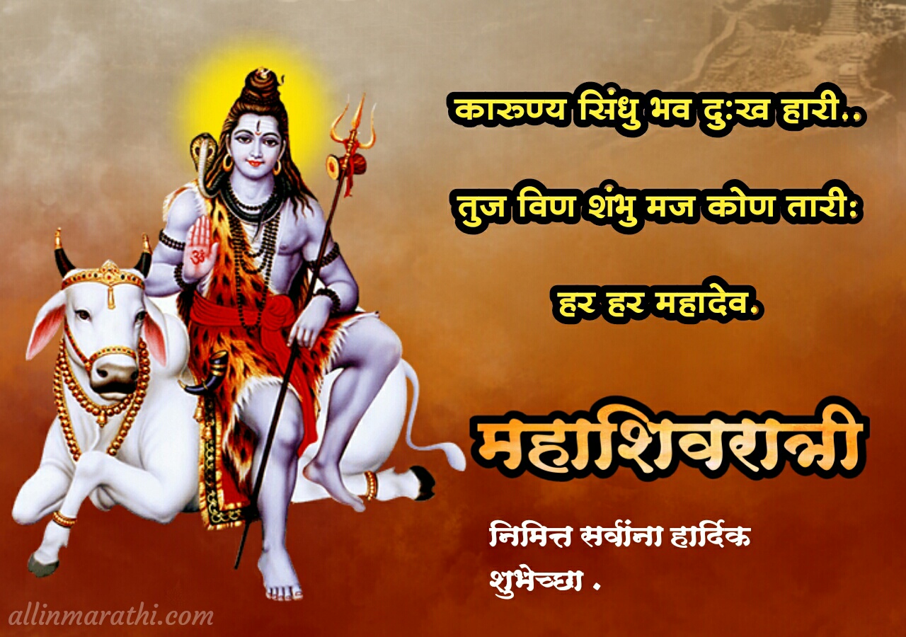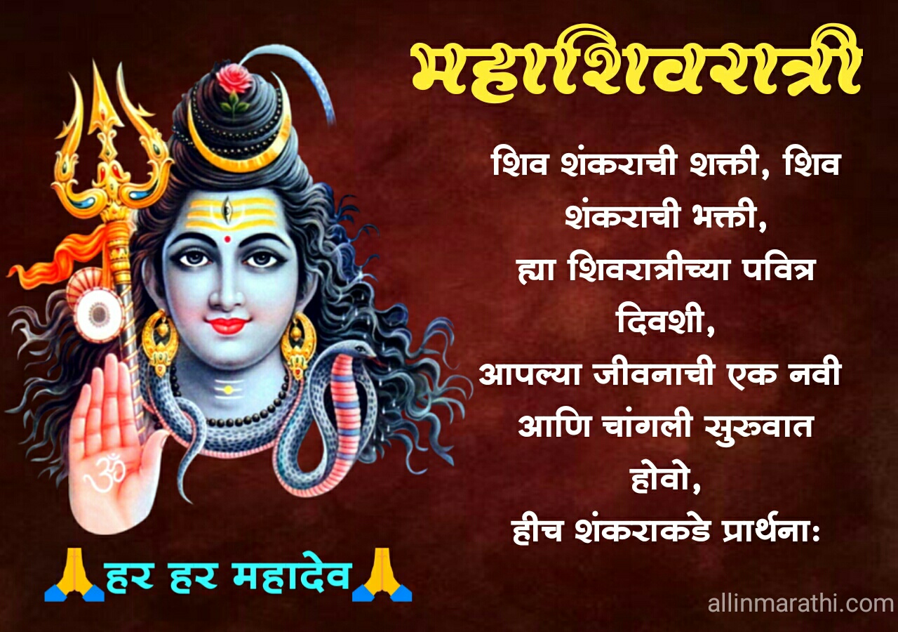 लक्ष्य दया :- तुमच्या जवळ आणखी महाशिवरात्रीच्या हार्दिक शुभेच्छा | Mahashivratri wishes marathi | Mahashivratri messages marathi | Mahashivratri status marathi............... असेल तर कमेन्ट मधे जरुर टाका आवडल्यास आम्ही जरुर ते या लेखात Update करू… 🙏 धन्यवाद🙏....